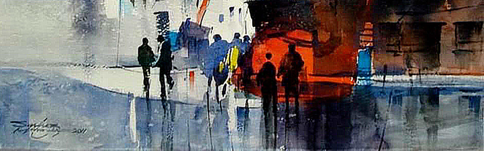Watercolour had one of its most vigorous in Karachi in the decade of the 1990s when works by the Karachi Watercolourists caught the attention of viewing public. A loosely knit fraternity of trained artists and hobbyists, this group was bound by a shared enthusiasm for outdoor painting. It was their fidelity to the scenic and the picturesque in and around Karachi that endeared them to the public and soon their charming watercolours became a part of every Gallery’s repertoire.Artist Sarfraz Musawir ranks the few Karachi watercolourists who are still pursuing the medium with serious intent and purpose. His forte lies incapturing the fleeting moments through intelligent distribution of colours and deft stroke play. By manipulating the wet paint as little as possible and layering colours rather than mixing them on the palette, he is able to achieve the vibrancy and luminosity that is the hallmark of watercolour. Specializing in inner city street scenes Sarfraz Musawir’s work was initially confined to the scenic and the picturesque but in the current show he concentrated on figurative paintings that not only enlarge his repertoire but bring variation to his technique also. Representational renderings with considerable use of loose washes show the artist capability in handling forms without being confined by taut outlines. Sparking highlights in the painting are particularly noticeable instead of using pigment the artists simply leaves blank areas which shine through as clear white patches. Indeed it is the sweeping flow of a loaded brush that animates his art work with a lively sense of colour and rhythm.The quick spontaneous use of the brush has also facilitated a new development in the artist’s style. His monochrome paintings in sepia hues are linear, sketchy pieces, created by manipulating the brush as a pencil point. This is a shift towards the minimal where treatment and technique take precedence over content.Worldwide watercolour is undergoing excited changes regarding techniques and mixed media collaborations. One hopes that artist like Sarfraz Musawir who had adopted this genre as the main medium of expression, will strive to not only keep it alive but also endeavour to further it by way of innovation.Salwat Ali